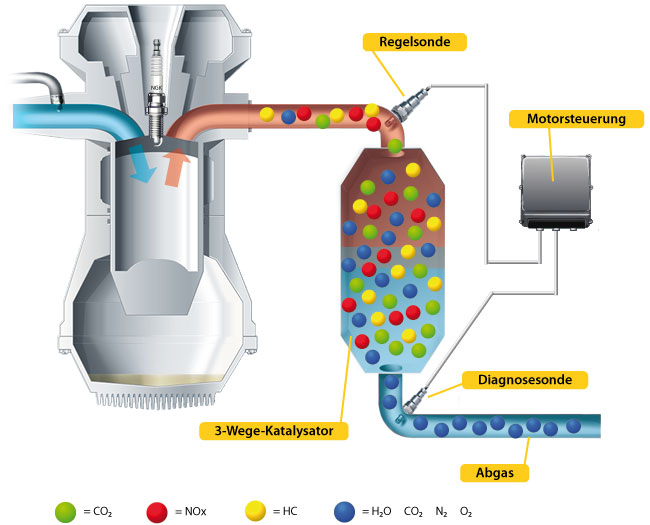 El valor medido de la sonda Lambda permite a la unidad de control regular la cantidad de inyección de forma que se garantice una composición óptima de la mezcla para crear las condiciones ideales para el tratamiento de los gases de escape en el catalizador. También se tiene en cuenta la carga del motor.
