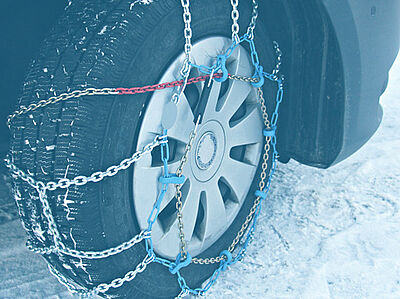 En condiciones muy invernales y con la calzada cubierta de nieve, las cadenas para la nieve pueden ser una ventaja para la seguridad. Pueden aumentar temporalmente la tracción y garantizar la circulación de los vehículos. Las cadenas para la nieve no son un sustituto de los neumáticos de invierno, sino sólo un complemento: el uso de cadenas para la nieve sólo debe limitarse a condiciones extremas.