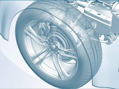 El sistema rueda-neumático, es decir, la combinación de neumático y rueda, es la única conexión entre la superficie de la carretera y el chasis. El sistema debe transmitir la fuerza de frenado y la fuerza de aceleración, así como las fuerzas de guiado lateral y la capacidad de carga a través de la superficie de contacto del neumático.