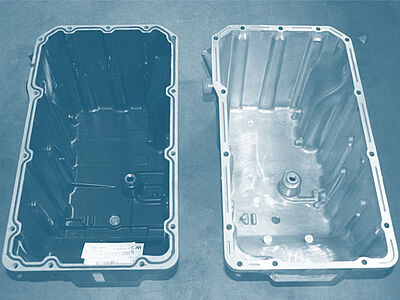 A diferencia de los turismos, los cárteres de plástico también se utilizan en los vehículos industriales. En parte por razones de resistencia, los cárteres de los automóviles deben ser de aluminio o acero, más estables.