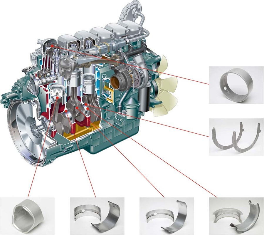 Los cojinetes lisos tienen la misión de soportar y guiar los componentes móviles dentro del motor y, sobre todo, permitir que giren prácticamente sin desgaste.