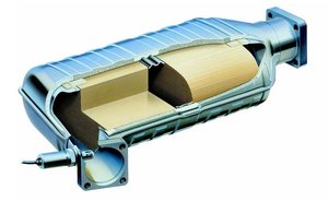 El catalizador está compuesto por una carcasa de acero inoxidable que alberga un núcleo cerámico (monolito) o metálico (metalito). Este núcleo tiene una estructura de múltiples canales longitudinales, diseñados para maximizar la superficie de contacto y mejorar la eficiencia del proceso. La superficie del núcleo está recubierta con una capa porosa (Wash-Coat) que contiene metales preciosos como platino, paladio y rodio, responsables de la reacción química que purifica los gases de escape.