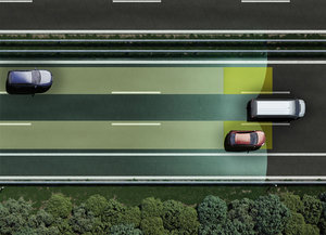 El asistente de cambio de carril es un sistema relacionado con el asistente de mantenimiento de carril. Es capaz de prevenir situaciones peligrosas al cambiar de carril y reducir así el riesgo de accidentes. El sistema se basa en dos sensores de radar situados en la parte trasera del vehículo, que vigilan las zonas situadas junto al vehículo y diagonalmente detrás de él. Si el sistema detecta vehículos en el ángulo muerto o vehículos que se acercan rápidamente por detrás, avisa al conductor, por ejemplo en forma de un símbolo luminoso en la zona del retrovisor lateral. Si el conductor pone el intermitente porque quiere cambiar de carril, el sistema también puede emitir una advertencia acústica y/o háptica y llamar así la atención del conductor sobre el peligro potencial.