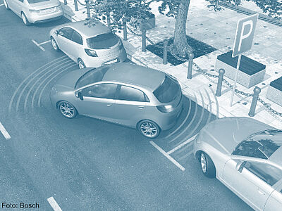 Con sensores de ultrasonidos integrados en la parte delantera y trasera del vehículo, los sistemas de ayuda al aparcamiento controlan la proximidad por delante y por detrás del vehículo. Para ello, los sensores emiten señales ultrasónicas y reciben su eco. El sistema utiliza la diferencia de tiempo para determinar la distancia al obstáculo. De este modo, los sistemas de ayuda al aparcamiento reconocen los obstáculos a tiempo. Según el fabricante y el sistema, la distancia se muestra al conductor de forma puramente acústica o de forma visual y acústica.